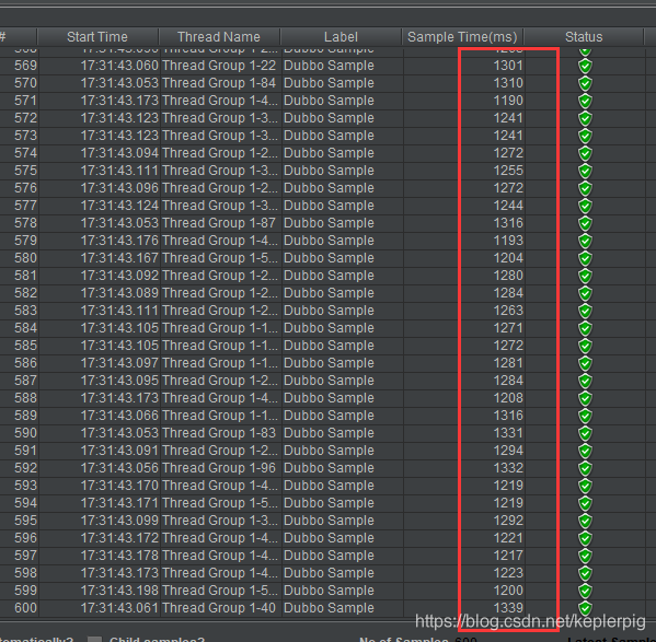 通过以上参数修改后,自己在本机模拟600并发,测试结果如下(测试都是基于A服务首次调用B服务):